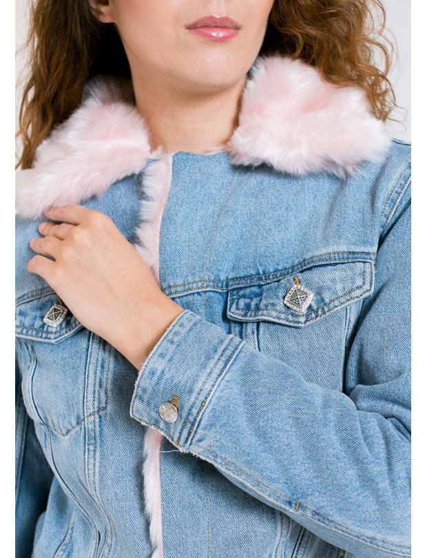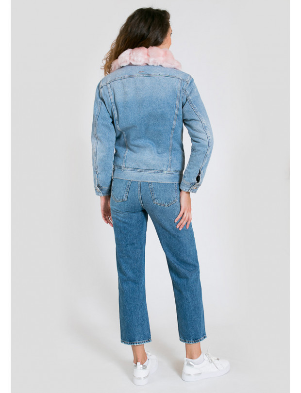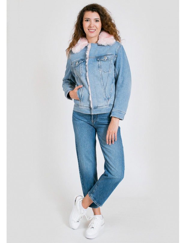 джинс розов мех